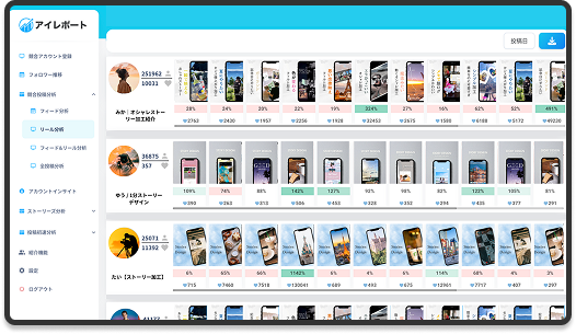 フィード・リール投稿の1時間後、3時間後、6時間後、1〜30日後の数値を記録し、初速でどれだけ伸びたのか、何日目から伸びたのかなどをグラフ付きで可視化できます。グラフに大きく変化があったタイミングでどの数値に変化があったのか、Instagramのアプリのインサイトでは確認のできない部分を徹底的に分析できるため、分析が苦手な人でも一切問題ありません。